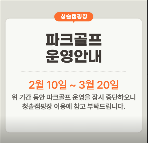⚠️ 파크골프장 운영 여부는 기상 조건에 따라 당일 변경될 수 있으므로, 방문 전 전화(010-8588-3017)로 운영 여부를 반드시 확인하세요.